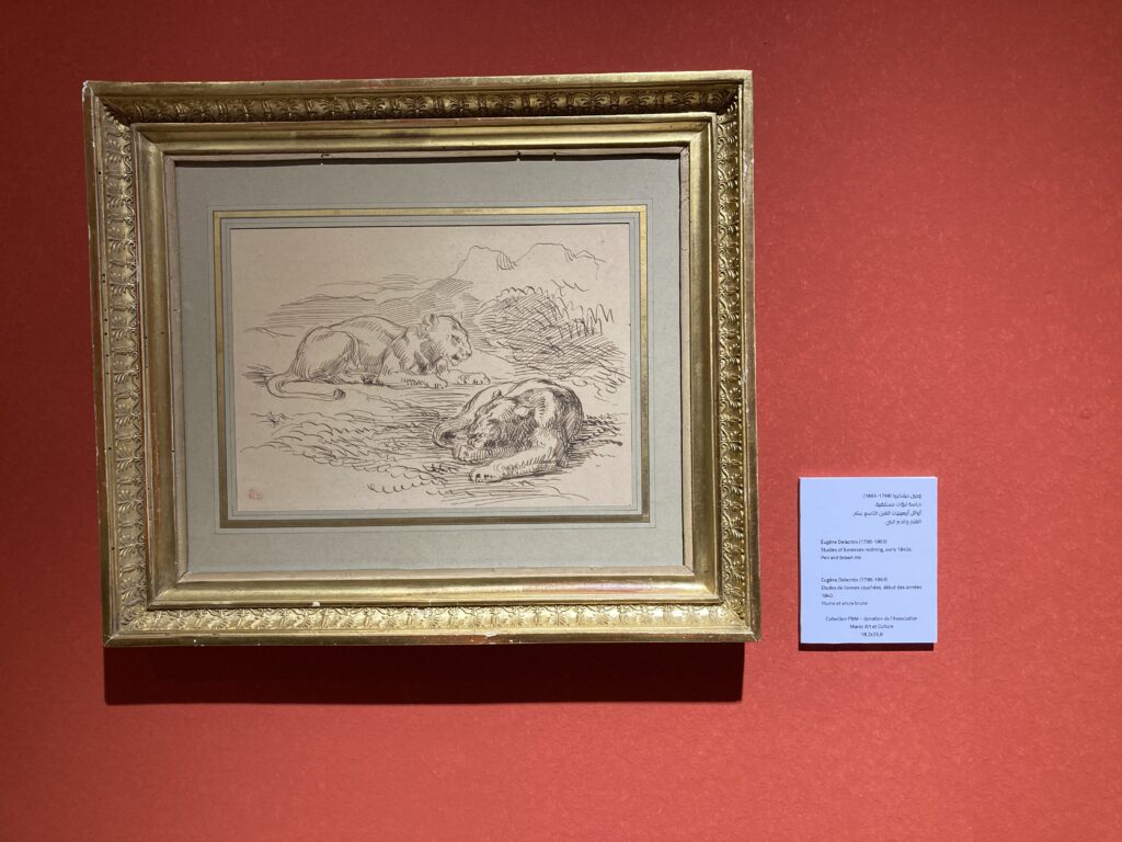 En présence de nombreuses personnalités, le dessin d’Eugène Delacroix “ Etudes de lionnes couchées “ ( vers 1840 ) offert par l’association « Maroc , Art et Culture »  est officiellement présenté sur les cimaises de ce musée dit des « artistes voyageurs ».
